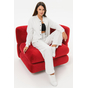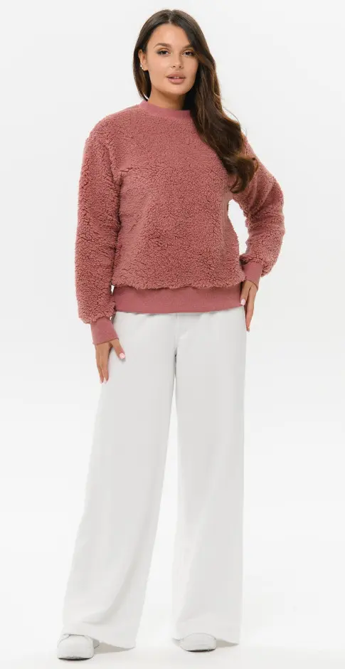Брюки широкие со вставкой по боковому шву, без карманов.