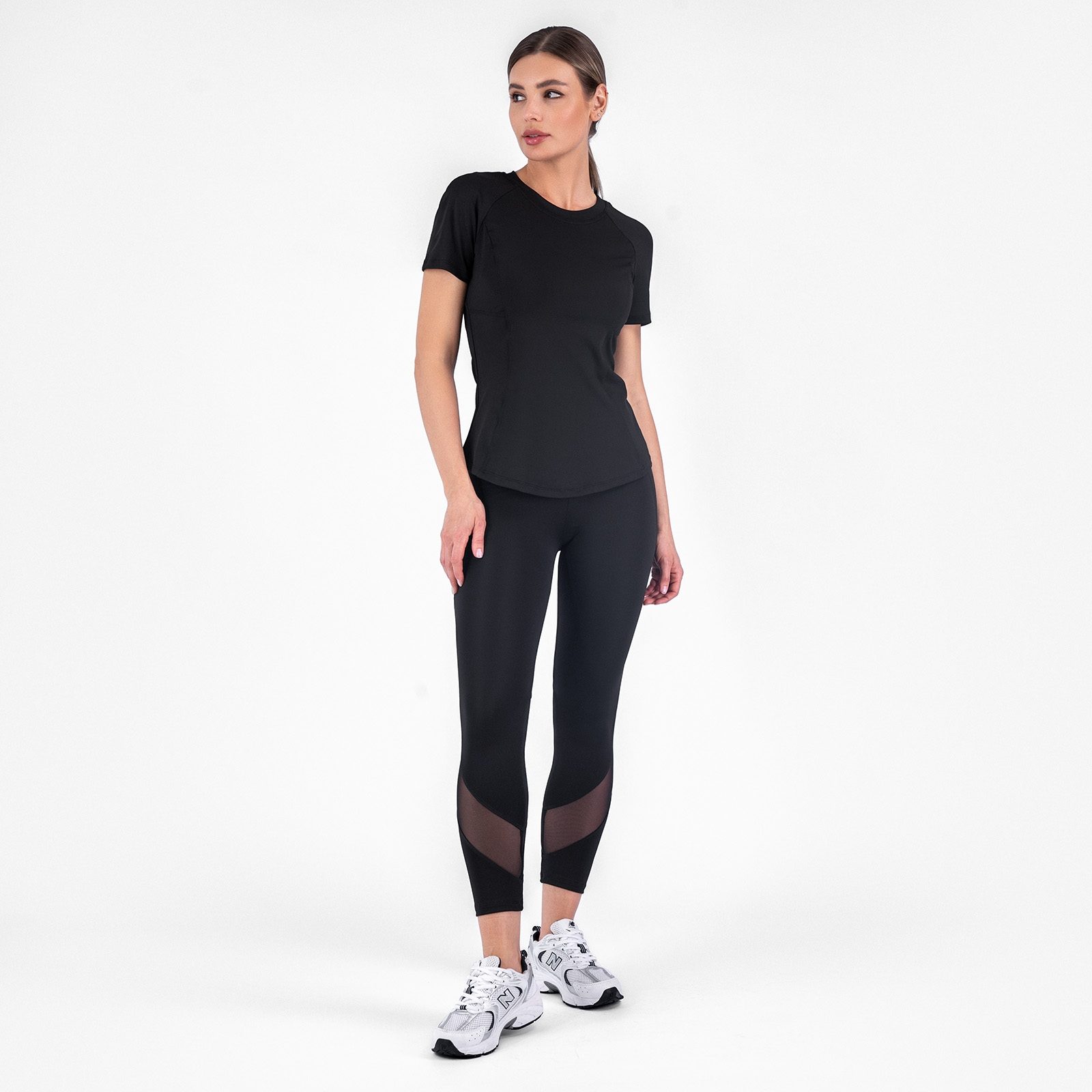 Бриджи на кокетке длиной 7/8 с резными линиями и вставками из сетки.