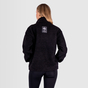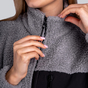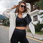 Женская толстовка на молнии с подрезными линиями по переду, воротником-стойка, карманами в подрезах.