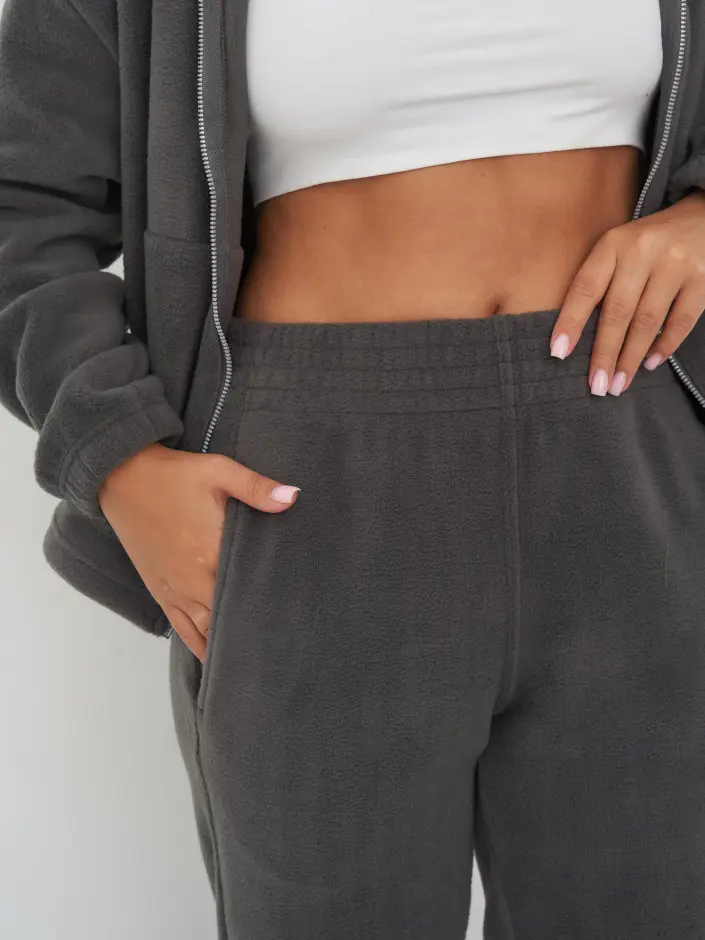 Брюки умеренного объёма, карманы в швах, низ на резинке