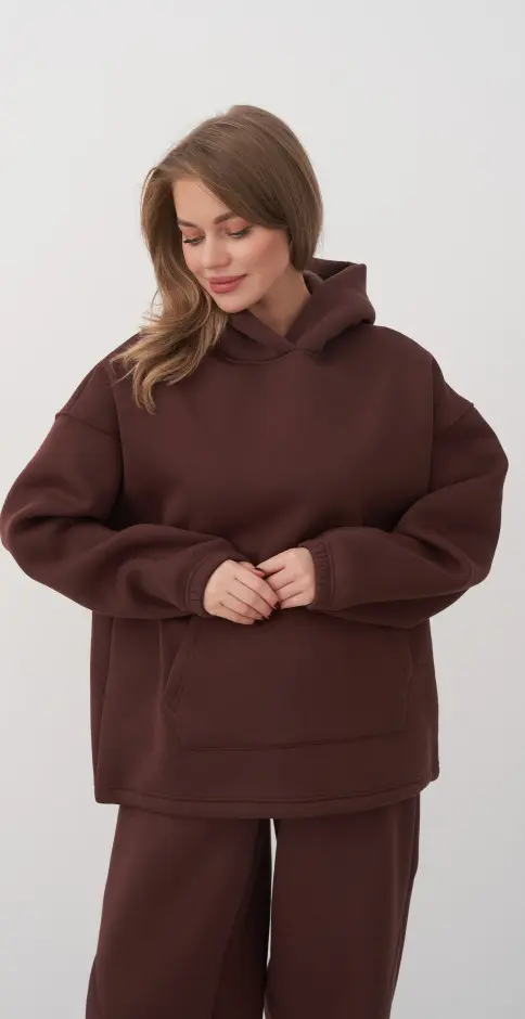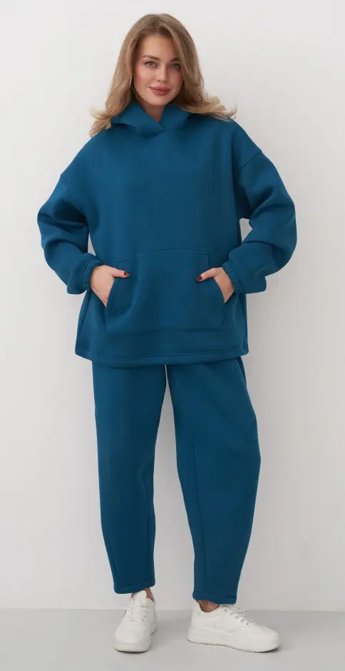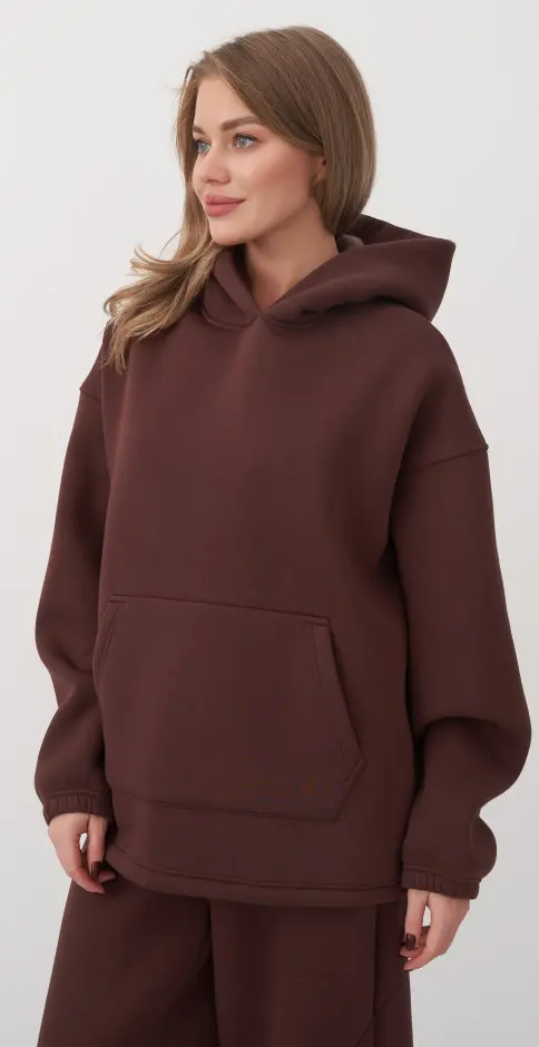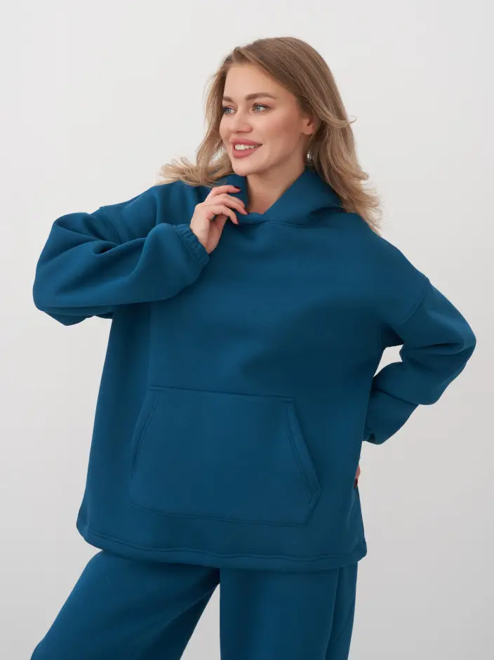 Толстовка свободная,с капюшоном ,карман "кенгуру". Низ изделия регулируется шнуром и фиксатором.