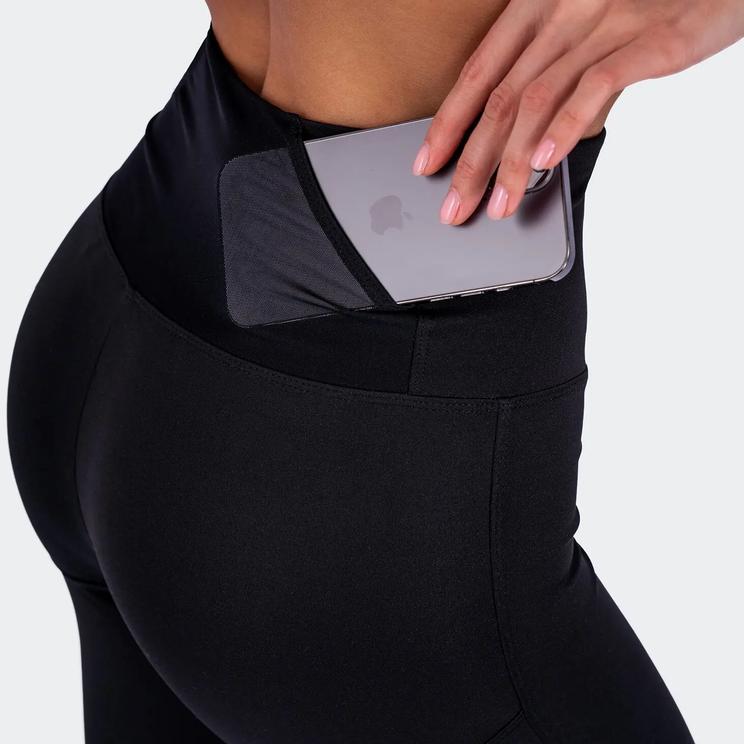Лосины на кокетке с карманом для телефона на спинке.