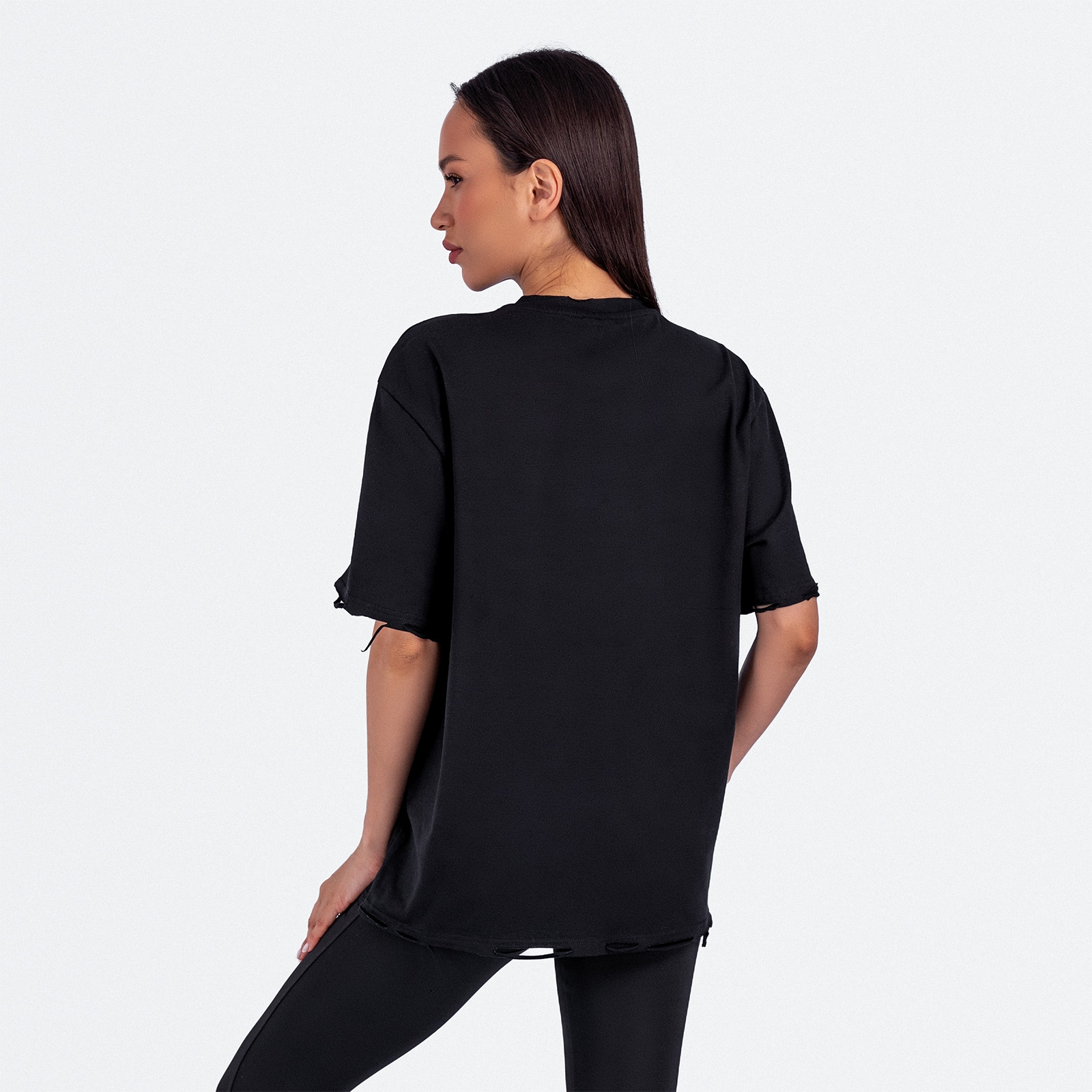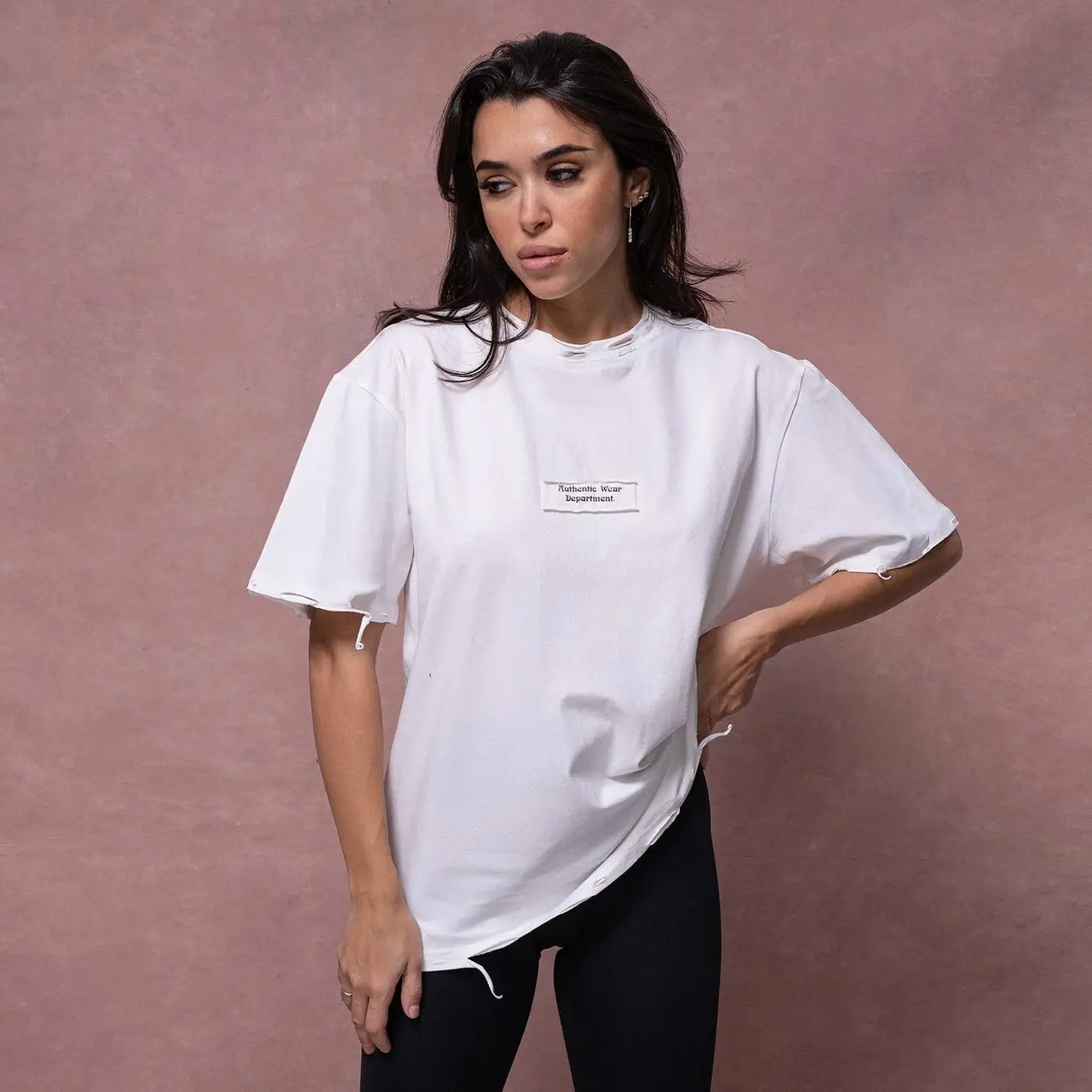 Женская футболка свободного кроя с рваными краями и нашивкой (термо "Autentic Wear Derartment").