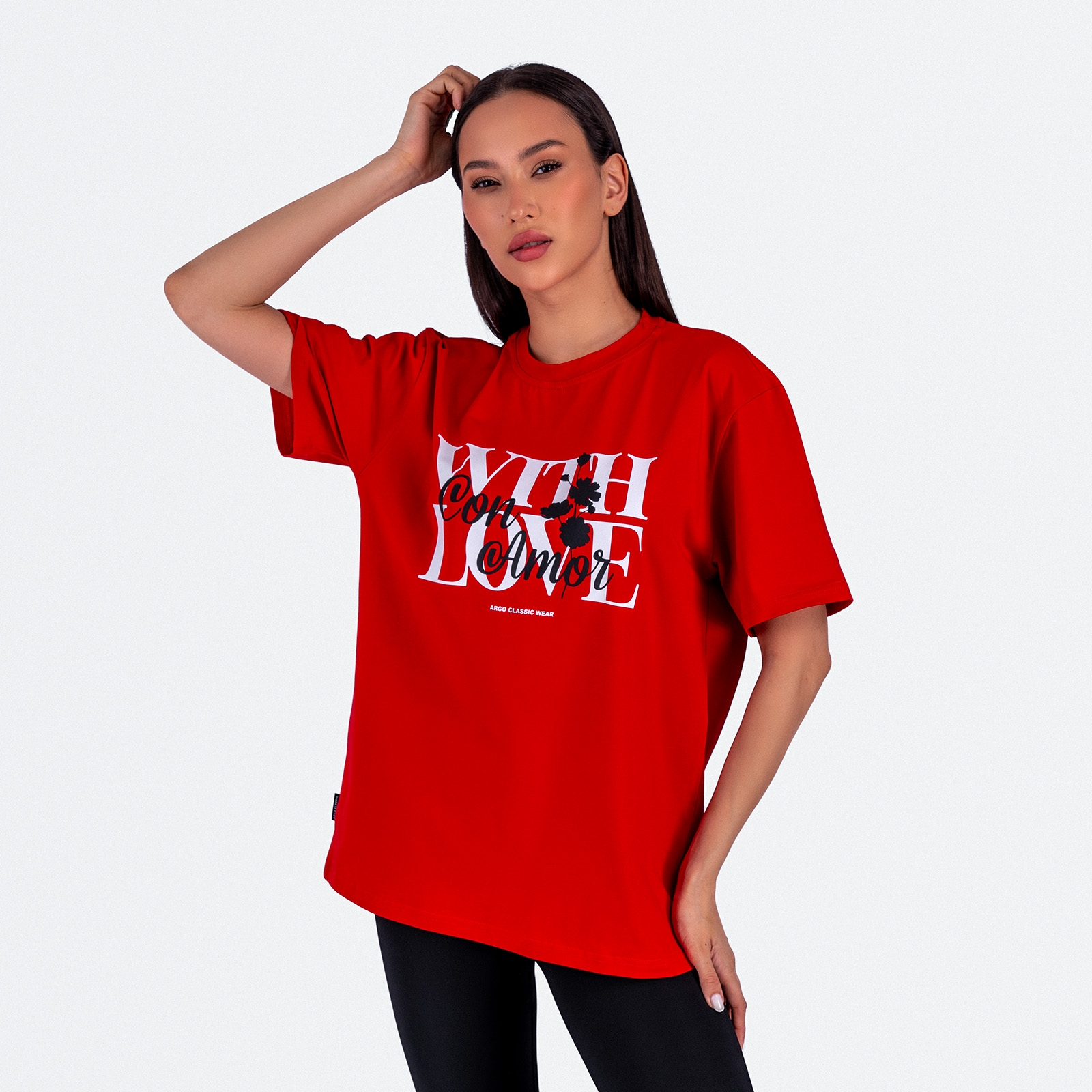 Женская футболка свободного кроя, круглый вырез горловины (принт "With Love Con Amor").