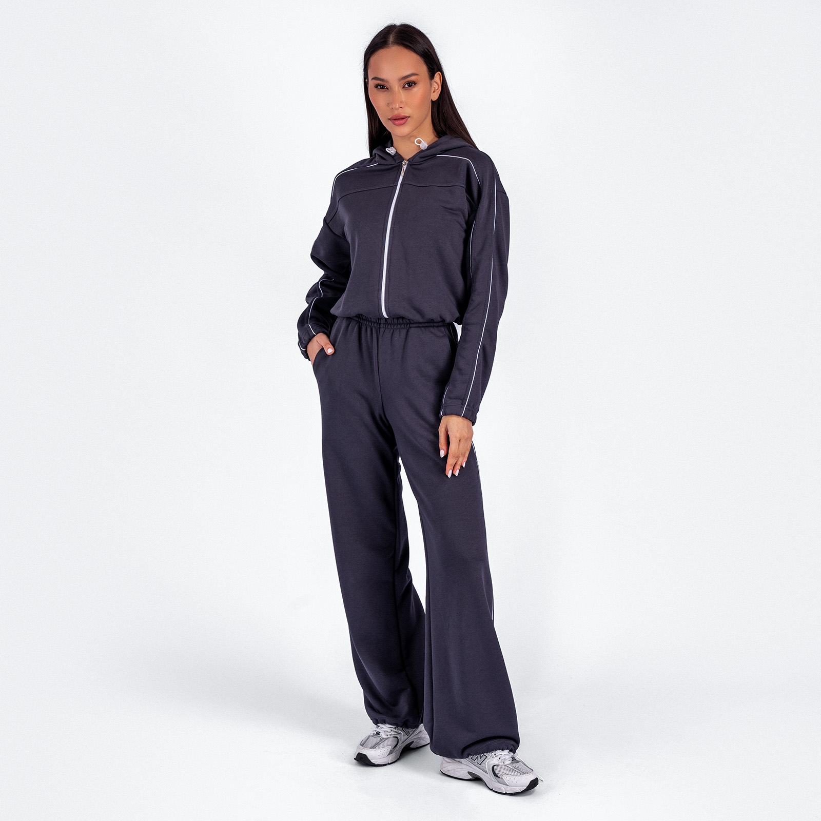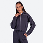 Женская укороченная толстовка с капюшоном и декоративными кантами.