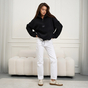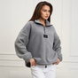 Женский анорак свободного кроя с воротником стойка и кулиской по низу.