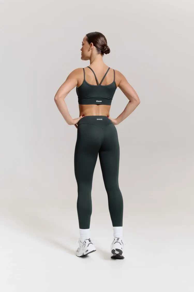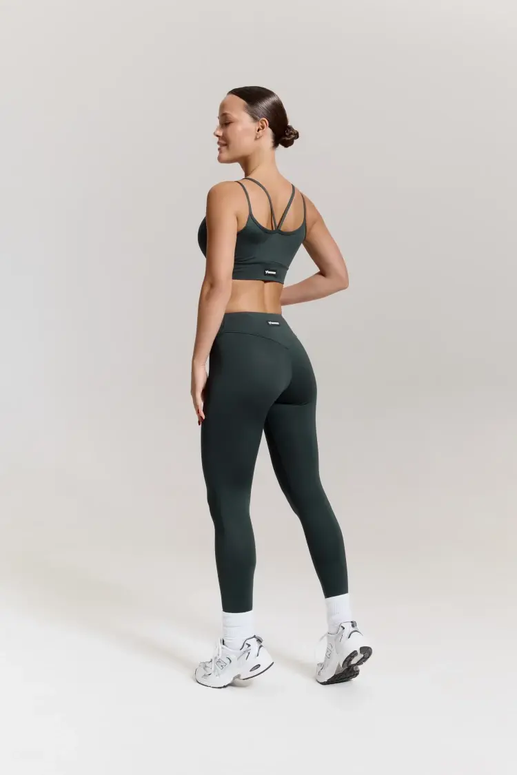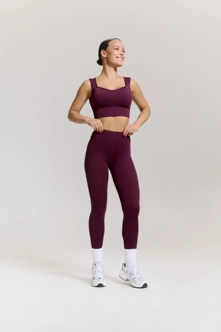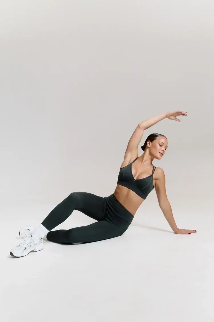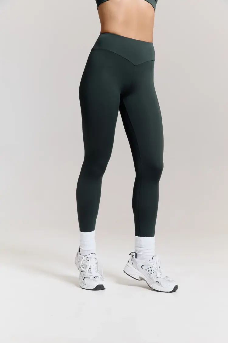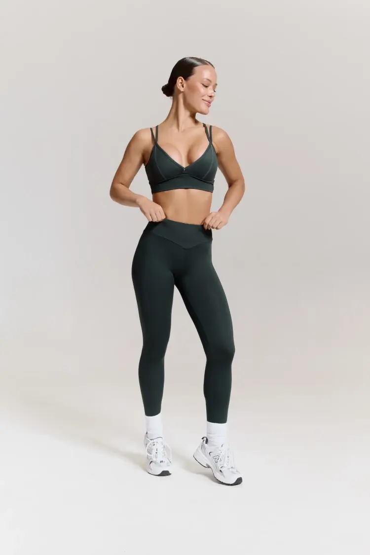 – Лосины с высокой посадкой и V-образным поясом визуально подчёркивают талию и создают эффект стройного силуэта.