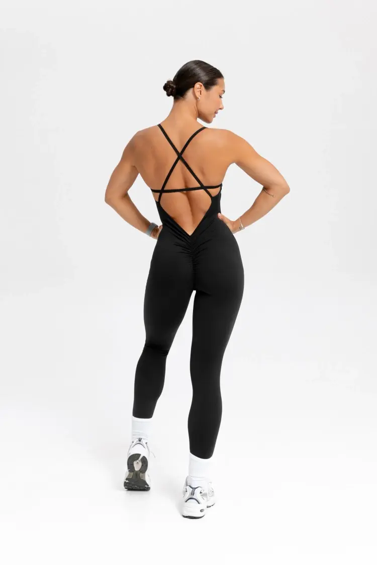 - Плоские швы предотвращают натирание кожи, что делает комбинезон идеальным для интенсивных тренировок.