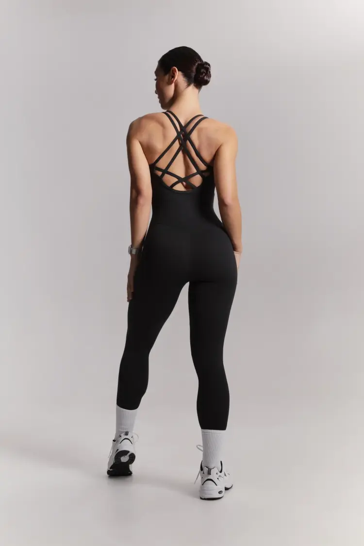 - Верхняя часть комбинезона - маечка с открытой спиной на бретелях перекрещивающиеся на спинке.