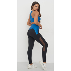 Лосины двухцветные, комбинированные с сеткой, с широким поясом.