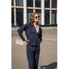 Женские брюки с притачным поясом, с карманами в боковых швах, по низу штанин кулиска с фиксаторами.