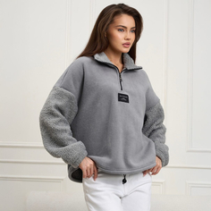 Женская толстовка на молнии, воротник-стойка, с карманами с клапанами на уровне груди.